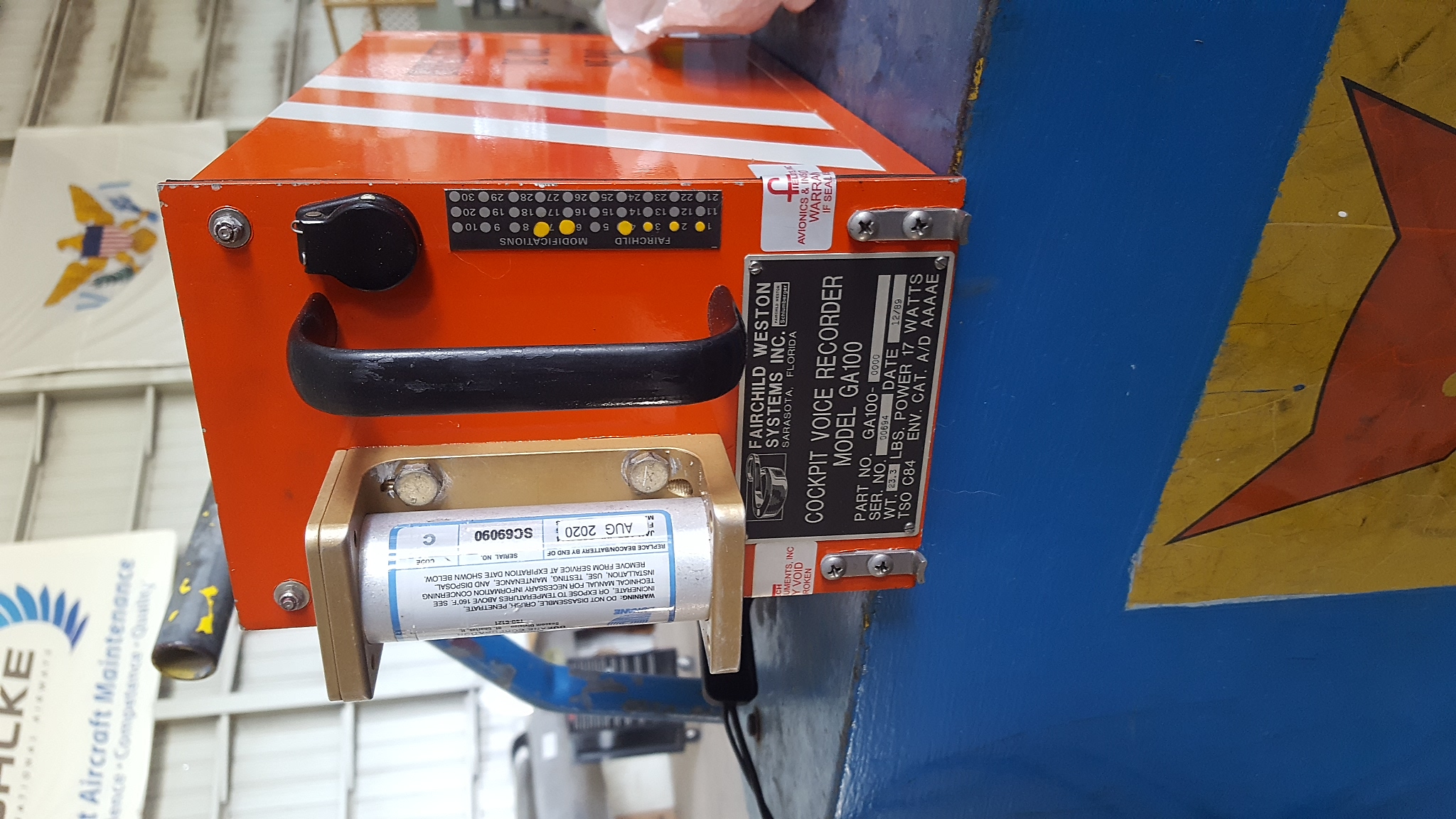 Tested underwater locator beacon P/N Model DK120 S/N SC69090 attached to CVR P/N GA-100-0000 S/N 00694. Ping check OK. voltage check 3.24 which is within limits. Battery next due AUG 2020. ULB checks good.